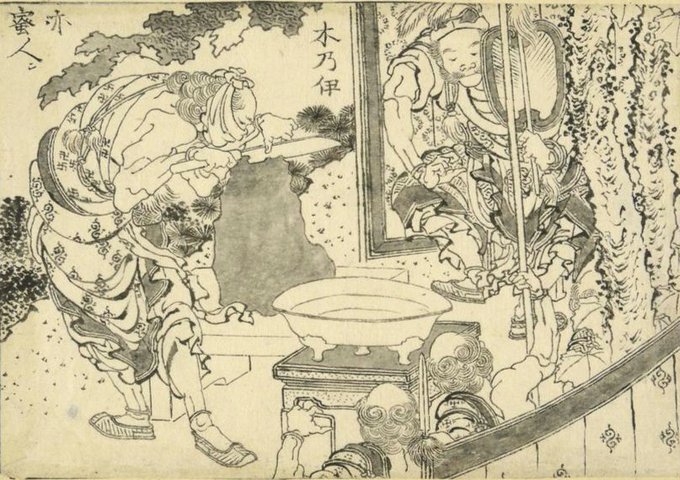 北斎の画稿(大英博物館が購入)より。山海経ネタないし故事奇談と中国や琉球台湾朝鮮などのものが目立つ。博物学的版本だったのか、絵物語だったのかわからない。木乃伊又は蜜人、とある情景は当時ミイラに染み付いた没薬を漢方に使ったことによる。