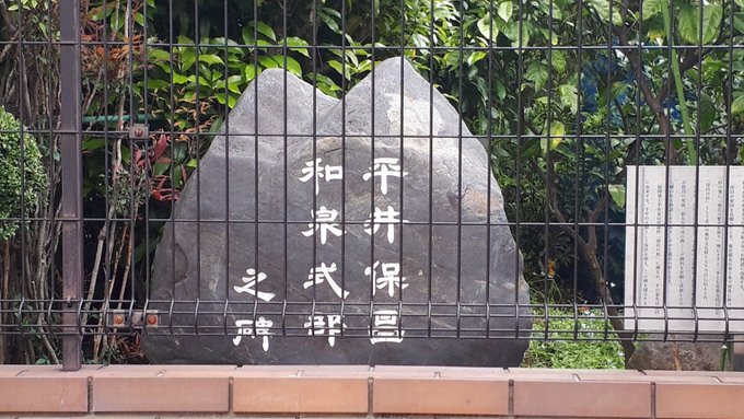平井保昌(藤原保昌)はあんまり明確な痕跡はなくて、子孫も正式には不明。和泉式部の最後の夫でもあり、藤原道長の時代ということで源平のいざこざがすぐ次の時代であり、室町に頼光四天王に入れられるなど武人として確立されるがほぼ伝説上。東京に箸を刺して杉の伸びた跡と、末裔住居のこの碑がある https://pic.twitter.com/wrW54SDlD2