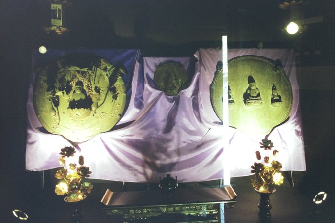 國學院大學博物館「中世日本の神々」主として神仏習合。本地垂迹思想に基づき仏教の大きな土台の上に配される神々が、新しく創造されたり輸入されたり二次創作されたり、その中にやたらリアルな老人の摩多羅神、神鏡・榊を乗っけた鹿の春日神など。男女神像と神鏡に付けた懸仏が圧巻(写真は胎蔵寺) pic.x.com/t1PZ0YC4T5