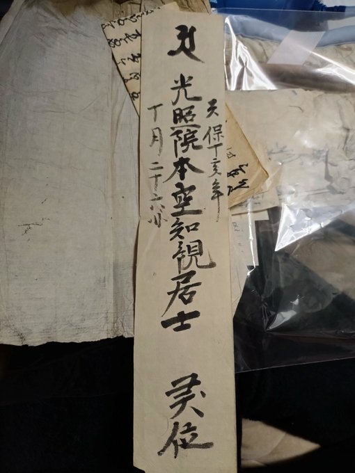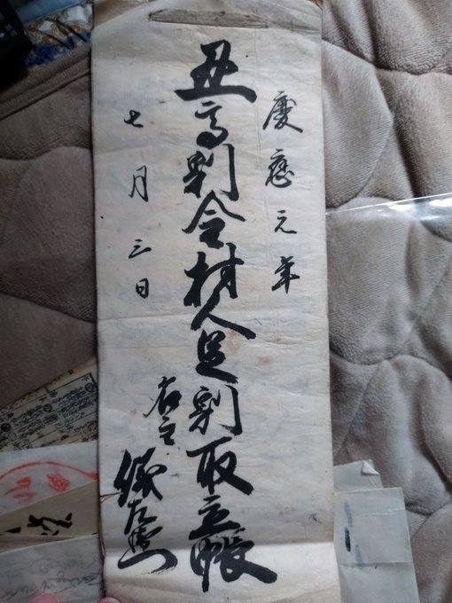 髭題目の書体は時代がもっと下るような感じ。南無日蓮大菩薩って普通に今も唱えられるので、日蓮自筆とされる髭題目があるが、通常はサインのような感じで筆者の名前が書かれることも鑑みると自筆に倣った近代のもののような気もするよrpインドの石窟で見つかった日蓮自筆題目