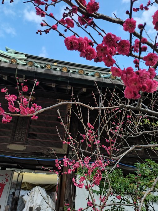 天神さんに行ったら梅が満開で、気を良くしてもう一つ行った。後の写真は埋め合わせ。東京縛り。天満宮(水神合祀のさい何故か中に熊野の御札を祀っているもよう)雪ヶ谷八幡神社(梅は残念ながら細いのが1本だけ。右から2番目の天神社)湯島天神亀戸天神 pic.x.com/Uu85JnIlbh